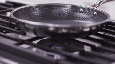 Our patented HexClad design allows heat to be distributed faster. For example, cooking on medium heat with HexClad will be similar to cooking on medium-high with other cookware brands. We recommend that our customers start cooking at lower temperatures and increase the temperature if need be.